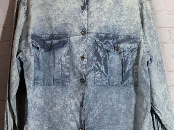 High-contrast, mottled effect created with bleach-imbued stones—for edgy, vintage character.
