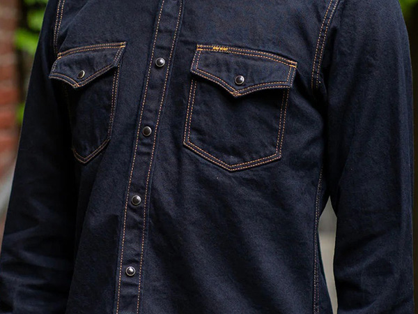 Untreated denim with intense indigo tone; fades uniquely over time with wear.
