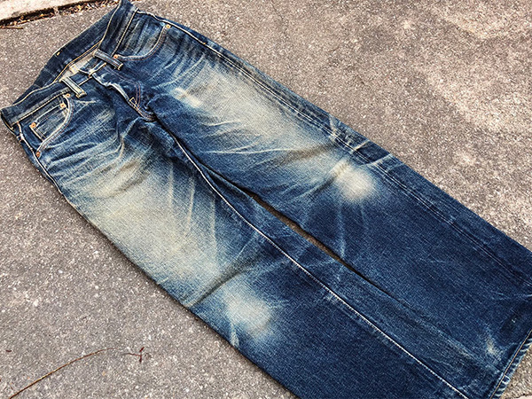 Focused discoloration on specific zones—like thighs or knees—for a bold, distressed effect.