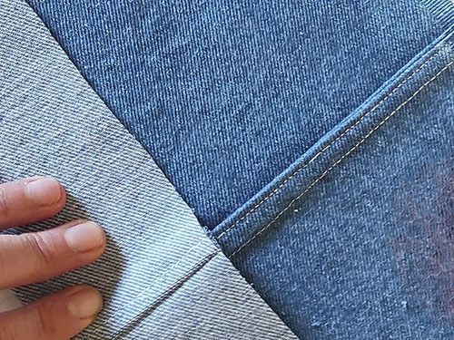 Straight stitches build the structure, while topstitches add reinforcement and iconic denim style.
