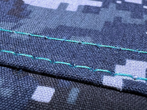 We use straight stitch in all major construction seams before adding reinforcements.